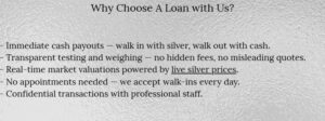 The process of obtaining Silver Bullion Loans is quick, secure, and hassle-free at our Scottsdale location. Here’s what you need to know.
